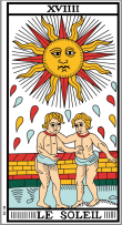 “… alle carte ordinarie da gioco, nel Tarocco, se ne aggiungono altre sulle quali ci sono simboli o raffigurazioni di situazioni simboliche per esempio, il simbolo del Sole o il simbolo dell’uomo appeso per i piedi o la torre colpita dal fulmine o la ruota della fortuna e così via; una sorta di idee archetipiche, di natura differenziata, che si mescolano ai componenti ordinari del flusso dell’inconscio…Sono immagini psicologiche, dunque simboli con cui si gioca perché il processo simbolico è un’esperienza in immagini e di immagini…Esse si combinano in certi modi e le differenti combinazioni corrispondono al giocoso sviluppo degli eventi nella storia dell’Umanità…L’Uomo sempre ha sentito la necessità di trovare un accesso attraverso l’inconscio al significato di una condizione presente perché c’è una sorta di corrispondenza o somiglianza fra la condizione prevalente e la condizione dell’inconscio collettivo…” Jung, 1933 – Seminario sull’Immaginazione Attiva