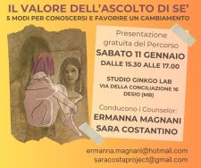 Cinque incontri in ognuno dei quali riavvicinarci all’ascolto di noi stessi, delle nostre esigenze e dei nostri movimenti interiori, per prenderci cura di noi.